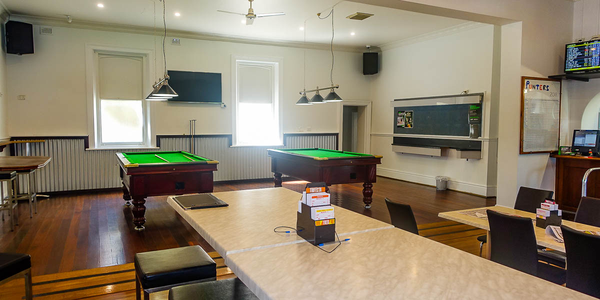 - A large room adjacent the bars with 2 large pool tables and customer seating